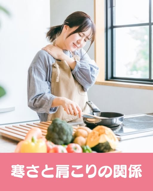 寒さで筋肉が冷えると、血流が悪くなり肩や首まわりの筋肉がかたまりやすくなります。